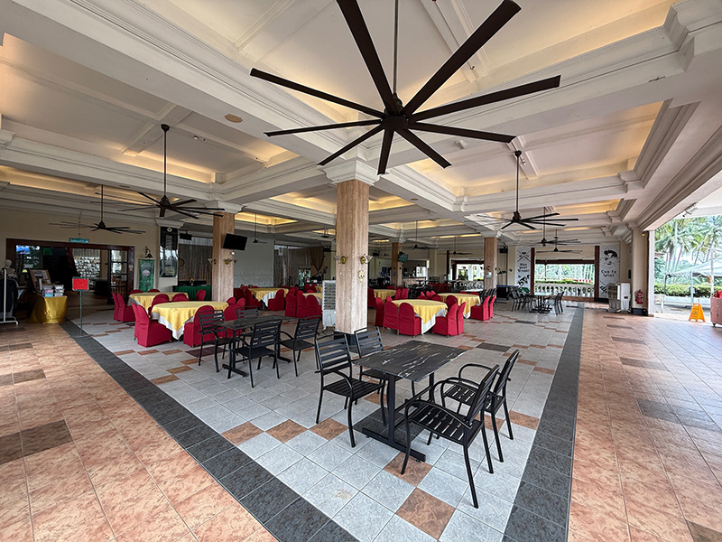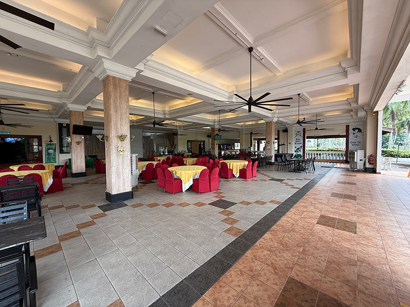 Located off the lobby and descending a short flight of stairs is the Cafe, with a wide verandah that opens on to the golf course assuring a breath-taking view.